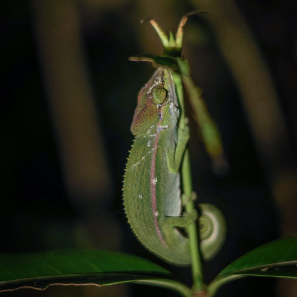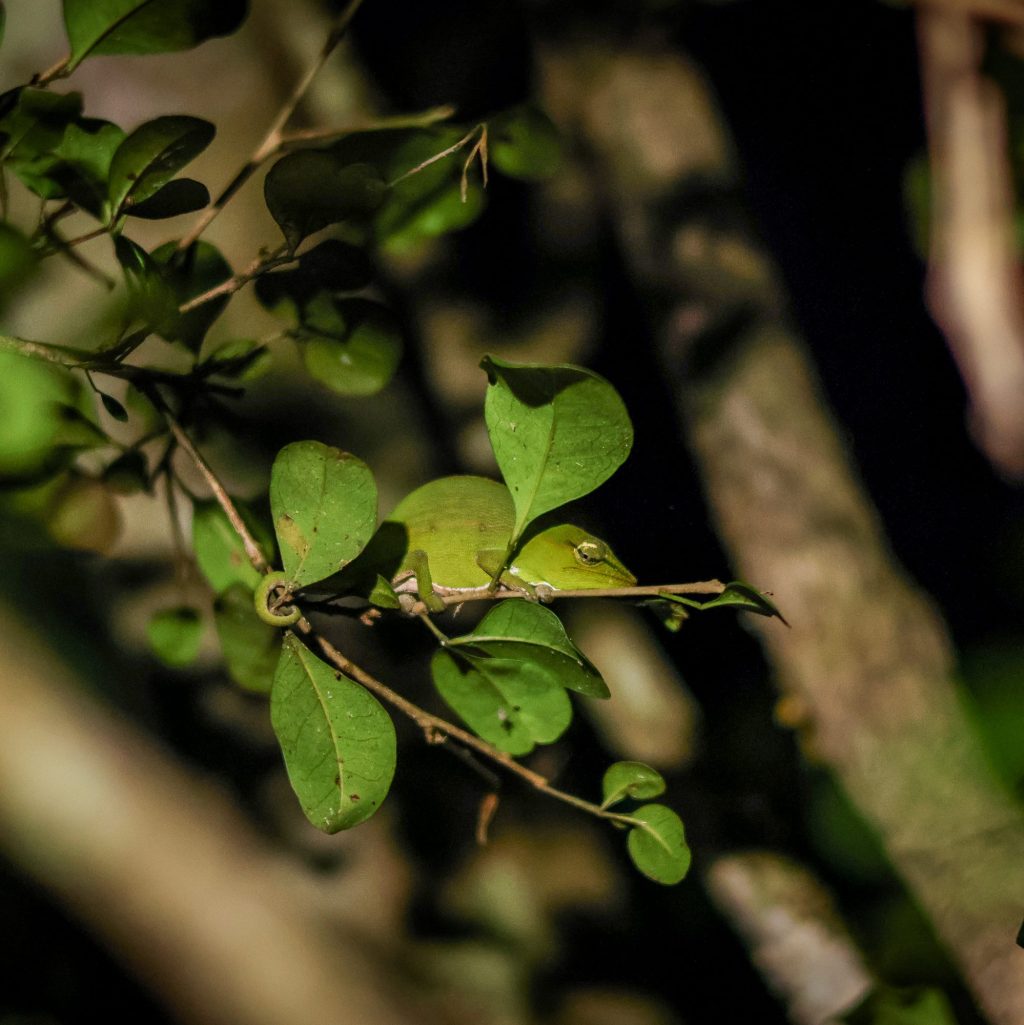 I also was not anticipating seeing all the reptiles! We had Princi with us again as our guide, and wow I swear his eyes are actually binoculars. He was pointing out a chameleon he saw and I could not see it. Like I just couldn’t – I tried sooo hard, but I couldn’t see it. Then Hani starts helping too and pointing and then says ‘it’s like 5m away’ – UM WOT? Yeah of course I couldn’t find it, I was looking within 1m of me, not 5m away at a chameleon that was camouflaged at night time. hahaha He just kept pointing out more chameleons and spiders etc as he walked past, as if these things were like so obvious, like the size of a dog or something. These guides are just so impressive, they know the forest so incredibly well and I just couldn’t get over how knowledgeable they were.