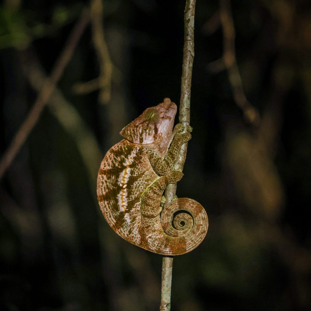 So with their help I saw many chameleons (I will figure out what species later) a few teeny frogs, spiders, a weird caterpillar, and we looked for the nocturnal big lemur, the wooly lemurs. We ventured for ages looking for them and met up with another nocturnal team, who hadn’t seen them either. But we were determined which paid off as we managed to find two in a tree on our way back to camp. They were huddled up high in a tree (what a surprise) so unfortunately no photos to prove I saw these guys!
